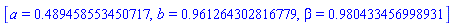 Unfortunately, it fails to find any other solution. There is a second solution, found by solving the middle equation for a, and so eliminating a from the first and third equations. This leads to two equations of the form , whose graph reveals that there are two intersections of the two implicit functions so defined. The second solution is then found to be