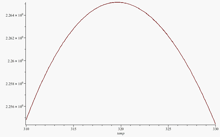 BulkModulus := proc(temp, press, fluid) local rho: uses ThermophysicalData: rho:=Property(density, temperature = temp, pressure = press, fluid); return rho*fdiff(Property(P, density = D, temperature = temp, fluid), D = rho); end proc: