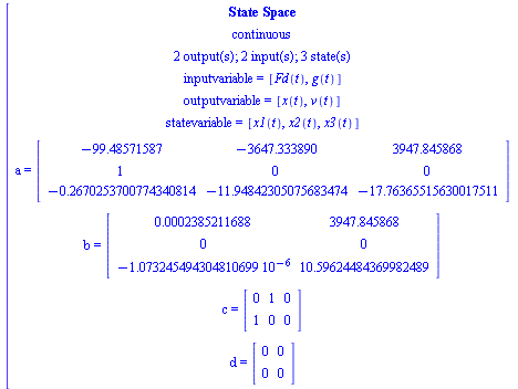 The last equation comes from the integrator in the integral compensation, and this also is complex because the right hand side also has the acceleration in it. We let Maple do the work of solving for this and eliminating it as follows: