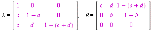D) Matrices L and R are assumed to be Markovian ones. That means that their coefficients in rows sum up to 1. It assures affine invariance of the generated curves by such subdivision matrices.