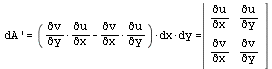 Transformando este cuadrado infinitamente peque?o de (x,y) a las coordenadas (u,v), el cuadrado se transformar? en una nueva figura que se puede aproximar, con un error infinitamente peque?o, a un paralel?gramo de ?rea , como se muestra a continuaci?n: