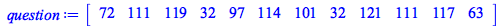 | > | A := Array([11, 22, 33, 44, 55]): |