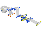 This model uses a Winch and a Pulley to demonstrate the basic operation of a crane. The log initially rests on the ground with the help of the contact library (see inside the Log subsystem). Force visualization is enabled for Rope component R11. The rope/chain tension is given by internal summary variables. Two of these values are probed and plotted.