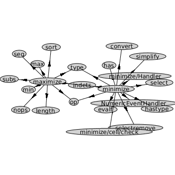 NumericEventHandler,convert,evalf,has,hastype,indets,length,max,maximize,min,minimize,minimize/Handler,minimize/cell/check,nops,op,select,selectremove,seq,simplify,sort,subs,type