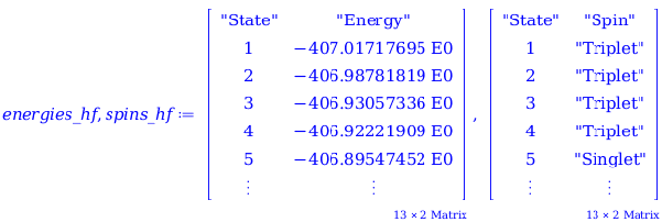 energies_hf,spins_hf  ExcitedStateEnergiesmolecule,ExcitedStateSpinsmolecule;
