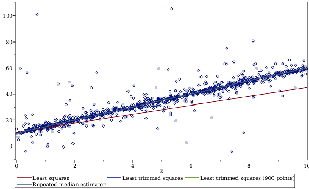 plotsdisplaypp&comma;plotls_regression_result&comma;lts_regression_result&comma;lts_900_regression_result&comma;rme_regression_result&comma;X=0..10&comma;legend=Least squares&comma;Least trimmed squares&comma;Least trimmed squares (900 points)&comma;Repeated median estimator&comma;view=0..10&comma;10..110
