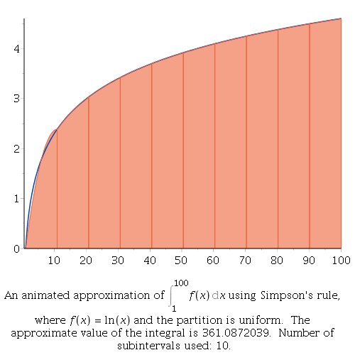 ApproximateIntlnx,1..100,method=simpson,output=animation