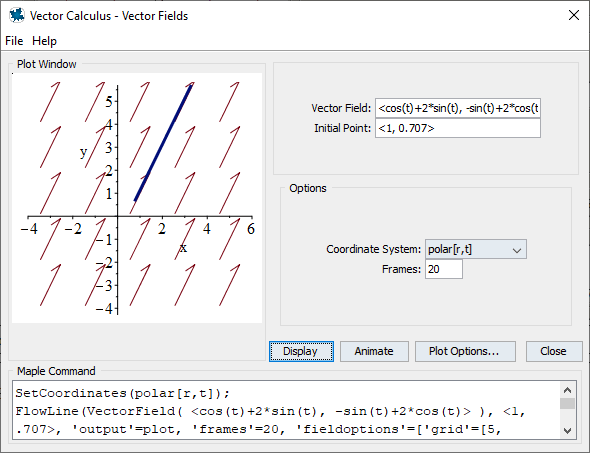 Draw the constant Cartesian vector field F=i+2 j, then express F in polar coordinates and draw that field.