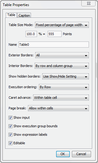 You can also access some table properties programmatically, as you can access embedded components. This help page describes the control and use of table properties programmatically.