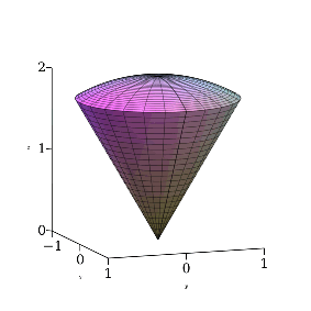 Sketch the region bounded below by the cone φ=π/6 and above by the sphere ρ=2.