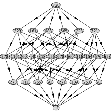 The empty set is always included in the graph and labeled as -1, with the other nodes labeled using non-negative integers.