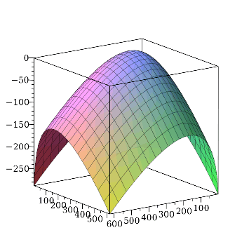 mesh -- surface generated from x,y,z values (plots:-surfdata)