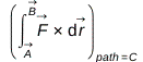 where and are points in space, the limits of integration, that belong to the curve over which the integral is performed. In the first integral, is a scalar function and the result of the integration is thus a vector. In the second and third integrals the integrand is a vector function, so that the dot product is a scalar and so is the integral, while in the third one is a vector and so is its integration over the region .