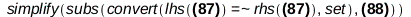 So simplify one with respect to the other one, eliminating (see simplify/siderels)