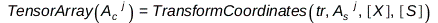 Both and return the same equations when using tensor notation. When doing so, one can transform the position (168), velocity (169), and acceleration (170) tensors, but since these tensors are expressed as functions of a parameter (the time), it is simpler to only transform the underlying metric via TransformCoordinates. This has the advantage that all the geometrical subtleties of curvilinear coordinates, like scale factors and dependency of unit vectors on curvilinear coordinates, are automatically and succinctly encoded in the metric: