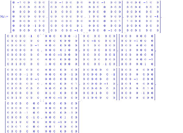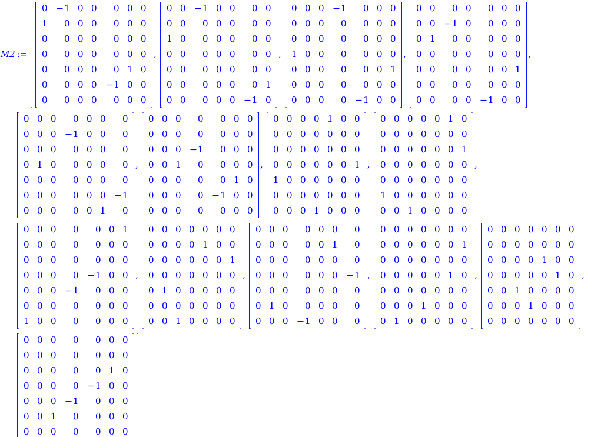 LD6:=e1,e2=e4,e1,e3=e5,e1,e4=e2,e1,e5=e3,e1,e7=e8+e10,e1,e8=e7+e11,e1,e9=e12,e1,e10=e7e11,e1,e11=e8+e10,e1,e12=e9,e1,e13=e14,e1,e14=e13,e2,e3=e6,e2,e4=e1,e2,e6=e3,e2,e7=e13,e2,e8=2e9+2e14,e2,e9=e8,e2,e10=e9+e14,e2,e11=e12,e2,e12=e11,e2,e13=e7,e2,e14=e8,e3,e5=e1,e3,e6=e2,e3,e7=2e9,e3,e8=e13,e3,e9=2e7,e3,e10=e12+e13,e3,e11=e9,e3,e12=e8+e10,e3,e13=e8,e3,e14=e7,e4,e5=e6,e4,e6=e5,e4,e7=e9,e4,e8=e12+e13,e4,e9=e7,e4,e10=2e12+2e13,e4,e11=e14,e4,e12=e10,e4,e13=e10,e4,e14=e11,e5,e6=e4,e5,e7=e12,e5,e8=e9e14,e5,e9=e8+e10,e5,e10=e14,e5,e11=2e12,e5,e12=2e11,e5,e13=e11,e5,e14=e10,e6,e7=e8,e6,e8=e7,e6,e9=e13,e6,e10=e11,e6,e11=e10,e6,e12=e14,e6,e13=2e14,e6,e14=2e13,e7,e8=e6,e7,e9=2e3,e7,e10=e1+e6,e7,e12=e5,e7,e13=e2,e7,e14=e3,e8,e9=e2,e8,e11=e1+e6,e8,e12=e3+e4,e8,e13=e3,e8,e14=e2,e9,e10=e2e5,e9,e11=e3,e9,e12=e1,e9,e13=e6,e10,e11=e6,e10,e12=e4,e10,e13=e4,e10,e14=e5,e11,e12=2e5,e11,e13=e5,e11,e14=e4,e12,e14=e6,e13,e14=2e6