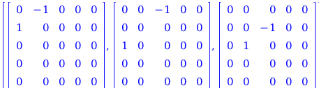 We construct the Lie algebras so3 and  so(3)⊕so(2)  as subalgebras of so(5). First, here are the 5×5 skew-symmetric matrices which define so5.