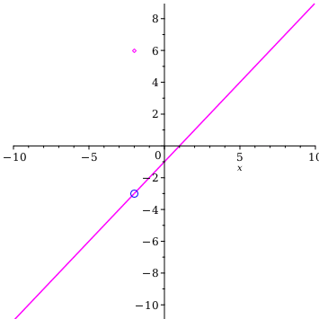 plotx21x1,x=2..2,discont=showremovable=color=Brown,symbolsize=15
