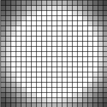 The option smooth=false or smooth=true is used to specify whether smooth shading should be used to display the density plot. By default, the value is false, which provides a plot of cells with discrete colors, and produces one cell for each value. If set to true, the data is interpreted to be a sampling of a function, where the samples now correspond to the corners of each cell (instead of the center), and smooth shading is used to draw the density plot. This means that for 5x5 data, smooth=false will produce a plot with 25 discretely colored cells, and smooth=true will produce a plot with 16 smoothly shaded cells.