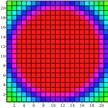 pointsseqseqexpx2+y2100,x=10.0..10.0,y=10.0..10.0: