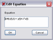 To access the Edit Equation window, click the Edit button to the right of the equation to be edited in the Edit Differential Equations window.