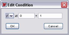 In this window, you can modify the condition, and click OK to accept changes made to the condition. Clicking Cancel rejects those changes. In either case, you are return to the Edit Conditions window.