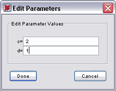 This window can be used to set or modify the values of any parameters present in the equations or conditions of the system.