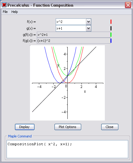 use the Function Composition tutor. The easiest way to launch this tutor with the functions fx and gx already embedded, is via the Context Panel. If the Student[Precalculus] package has already been loaded, then the Context Panel will provide access to all relevant tutors.