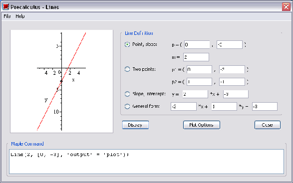 The Line tutor can also be launched by the LineTutor command with any of the arguments in Table 4, or with the equation of a line.