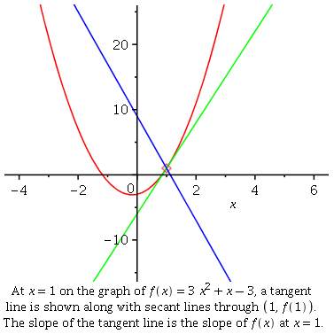 Figure 6: Secant and tangent lines on a graph of fx=3 x2+x−3