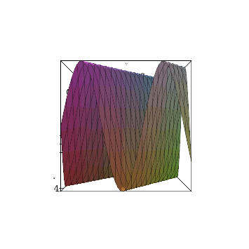 plot3d(sin(x+y), x=-5..5, y=-5..5, viewpoint=["circleleft", frames=20]);