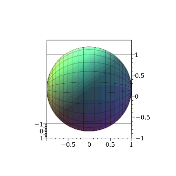 plot3d(1, x=0..2*Pi, y=0..Pi, coords=spherical, viewpoint=[path=M]);