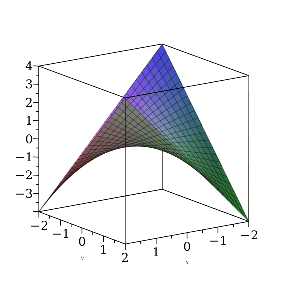 H≔plot3dx⋅y,x=−2..2,y=−2..2