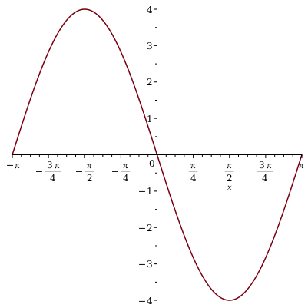 Explore plotAsinx, x=π..π, view=4..4, parameters=A=4.0..4.0, tooltip=vertical scaling factor