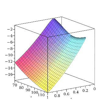 plot3dΘ,σ=0..1,K=70..120,axes=BOXED