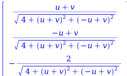 Obtain the flux of the field F=x i+y j+z k through the surface defined parametrically by the equations xu,v=u+v,yx,v=uv,zu,v=u v and the bounds u0,1, v0,u.
